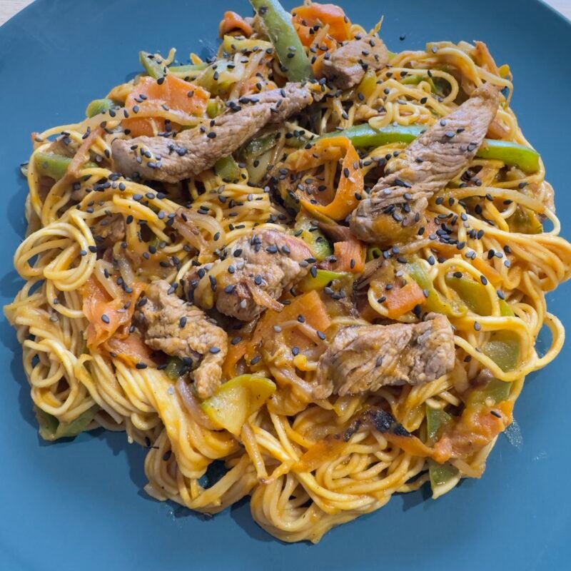 Nouilles sautées au bœuf et légumes